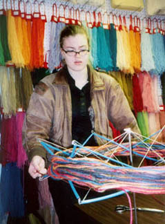 Andred at a local crafts shop winding a hank